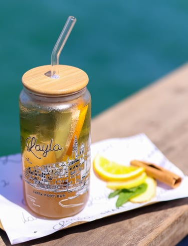 استمتع بالمشروبات اللذيذة والسلطات الطازجة وإطلالات البحر المذهلة في مقهى ليلى.