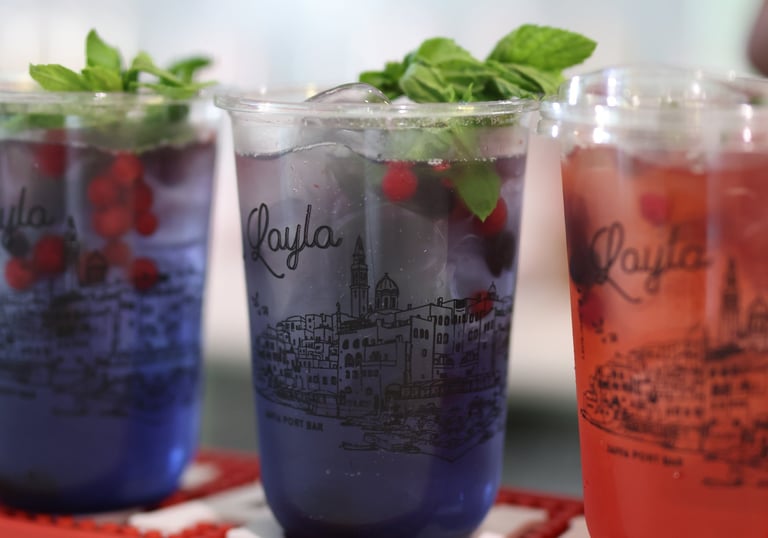 استمتع بالمشروبات الرائعة والطعام اللذيذ بجانب البحر في مقهى ليلى.